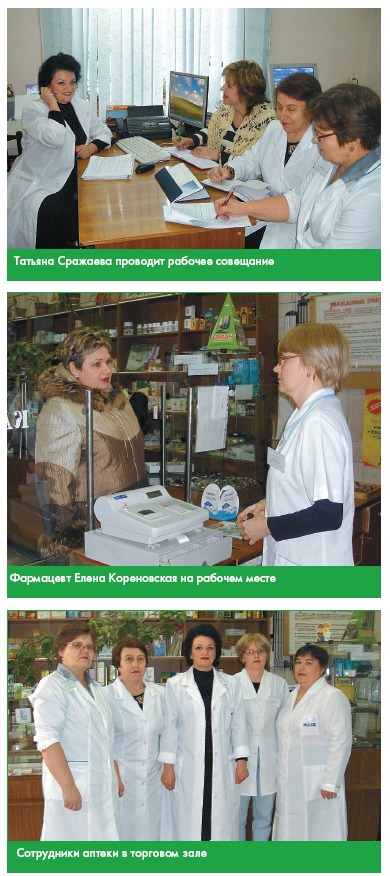 Пройдя по всем подразделениям аптеки, мы завершаем экскурсию в кабинете ее директора. Рабочий день в фармучреждении закончился, а потому здесь собираются все, кто не спешит домой. Говорим о жизни, о ее смысле, странностях, ценностях. И здесь снова лейтмотивом звучит не устаревающий постулат: успех дела определяют кадры. «Сотрудники нашей аптеки, — убеждена Татьяна Сражаева, — беззаветно преданные своему делу люди. Многие из них трудятся на одном предприятии 30—40 лет. Они воспитаны на идеалах служения человеку. Именно этим кредо руководствуется в своей работе фармацевт Марина Шинкаренко, которая за последние годы дважды занимала призовые места в областных конкурсах на звание «Лучший фармацевт Дона». Примером для коллектива служат и Валентина Кондакова, и Раиса Беликова, и Елена Гунбина». «Своей доброжелательностью и отзывчивостью, — утверждает директор аптеки, — они и привлекают покупателей. Но при этом никогда не навязывают больному то, что ему не нужно. Всегда исходят из его потребностей и возможностей».