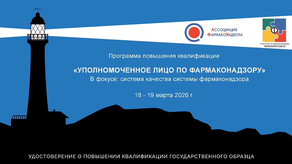 18–19 марта 2026 года состоится онлайн программа повышения квалификации «Уполномоченное лицо по фармаконадзору. Соорганизаторами мероприятия выступают «Агентство по фармаконадзору «Фармкомплаенс» и «Ассоциация фармаконадзора»