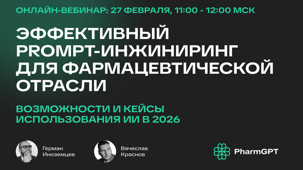 PharmGPT запускает эксклюзивный онлайн-вебинар для фармацевтической индустрии «Эффективный Prompt-инжиниринг для фармацевтической отрасли. Возможности и кейсы использования ИИ в 2026». Он состоится 27 февраля, в пятницу, с 11:00 до 12:00 мск.